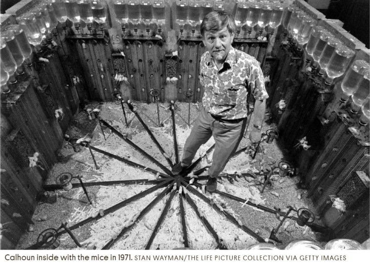 Um die Frage zu klären, welchen Einfluss der zur Verfügung stehende Raum auf eine wachsende Population hat, startete die John-Hopkins-University 1947 mit einem Nagetierökologie-Experiment. John B. Calhoun nahm als Forschungsassistent an diesem Versuch teil.