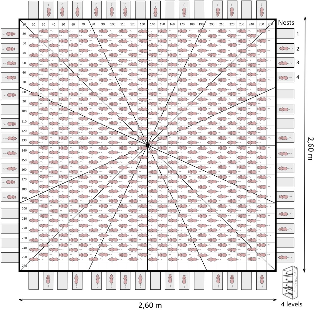 Das Mäuse-Universum dieses Experiments war ein begrenzter physikalischer Raum, der aus 16 gleich aufgebauten Zellen bestand (siehe Abb.1) – einem 16-Zellen-Universum. Jede Zelle bot laut Calhoun die Möglichkeit, viele der Verhaltensweisen auszuleben, die für die Tierart charakteristisch sind.
