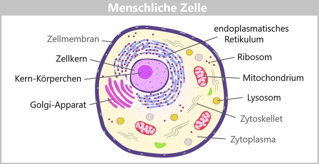 Eine kurze und übersichtliche Einführung in den Zell-Aufbau kommt von der amerikanischen Agentur für digitale Kommunikation Nucleus Medical Media. [Spektrum] Sie soll uns auf die nächsten Erläuterungen einstimmen.