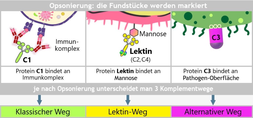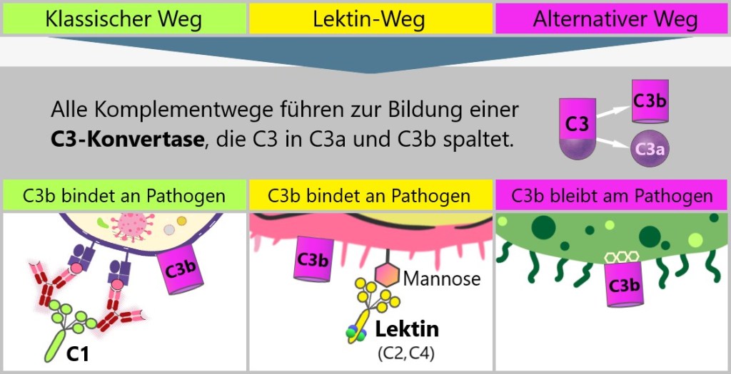 Aktivierung des Komplementsystems: Die Bindung der Antikörper kann auch eine Kaskade von Reaktionen auslösen, die als Komplementsystem bekannt ist (wie in Kapitel 5.4. ‚Das Komplementsystem‘ beschrieben). Diese Kette von Reaktionen führt zur Zerstörung der markierten Krankheitserreger.