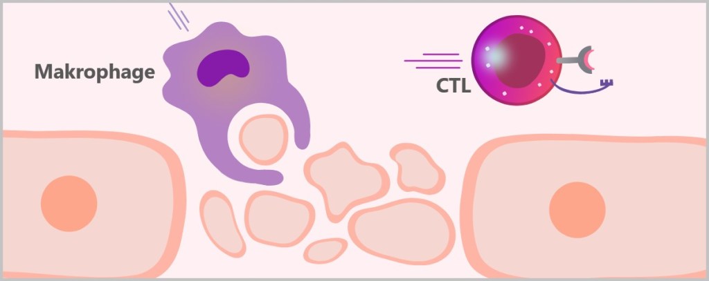 Bleiben jedoch kleine Mengen von Antigenen im Körper zurück, kann dies verschiedene Auswirkungen haben. Einerseits kann es die Immunreaktion verlängern, was in manchen Fällen hilfreich ist, um sicherzustellen, dass die Infektion vollständig beseitigt wird. Andererseits kann es auch zu einem unnötigen Überleben und einer anhaltenden Aktivierung von Immunzellen führen, was das Risiko von chronischen Entzündungen oder Autoimmunreaktionen erhöhen könnte.
