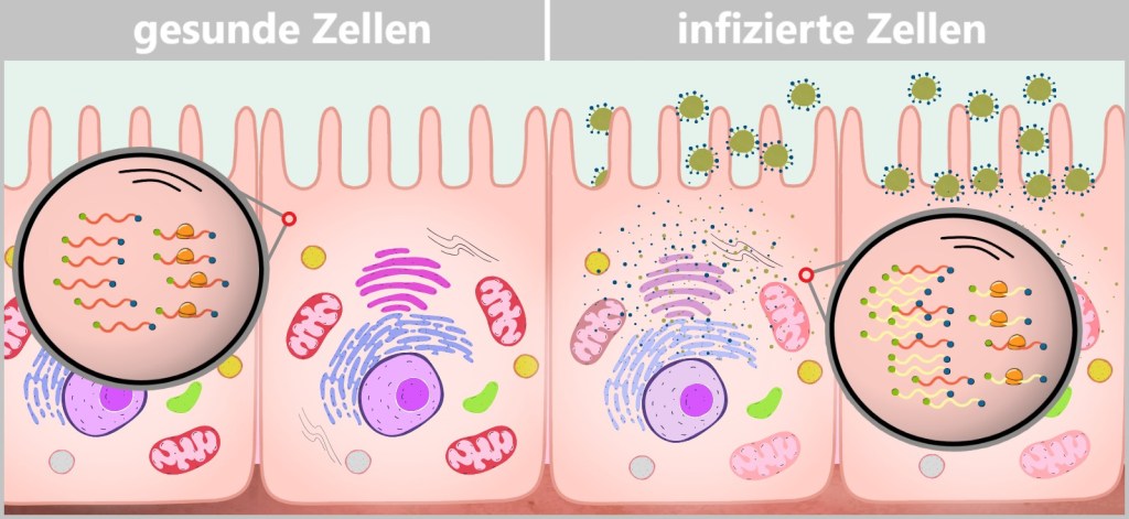 Zellen bauen Mauern, Viren springen darüber.