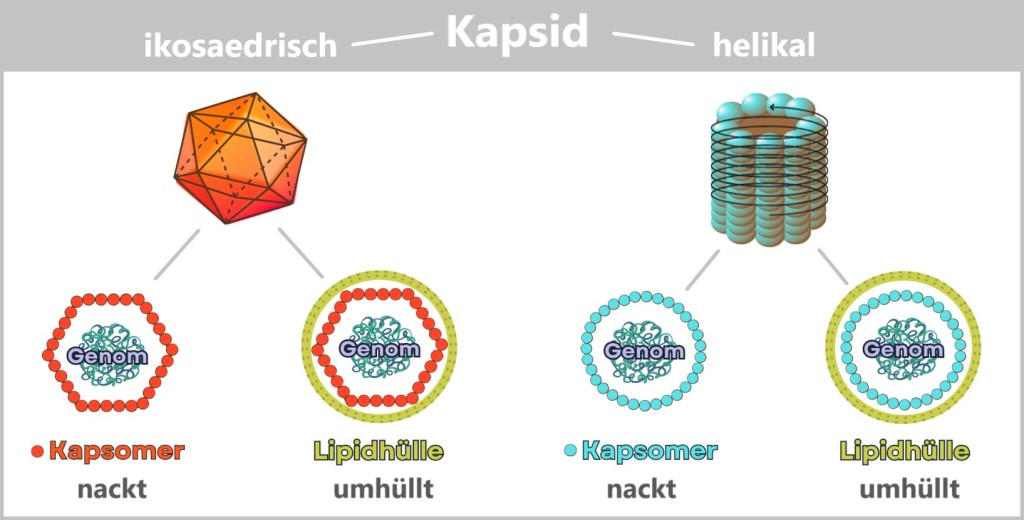 Hinter diesen originellen Strukturen steckt pure Funktionalität – ganz ohne unnötigen Schnickschnack: ein Päckchen genetische Information (DNA oder RNA), sicher verpackt in eine robuste Proteinhülle. Manche Modelle gönnen sich noch eine schützende Membranhülle – dreist dem letzten Opfer entrissen.